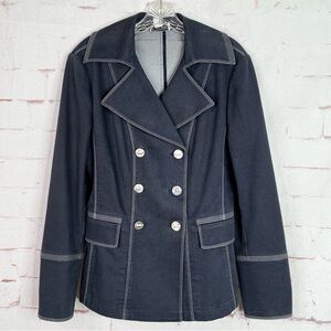 ST. JOHN Sport M Nautical Double Breasted Navy Cotton Blend Blazer Silver Button