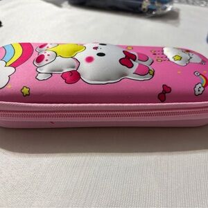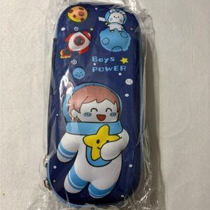 Adorable cartoon pencil cases featuring playful designs. One in blue with a space theme, and another in pink with a cute bunny and rainbow. (Set of 2)
