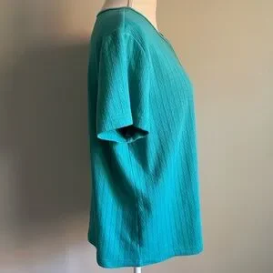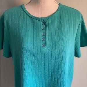 Short Sleeve Textured Henley Shirt Blue Green