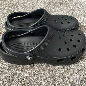 Barely worn black crocs size women’s 8, men’s 6. Bottom wear as shown in photos