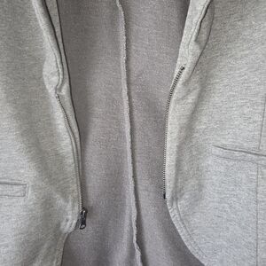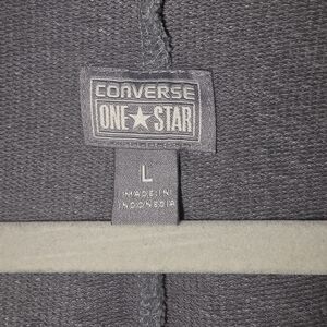 Converse Women's Heather Gray Blazer Front Zipper Faux pockets 100% Cotton Large. Stylish and versatile gray blazer by Converse One star, Features a zip up front, long sleeves, and a comfortable and soft 100% cotton fabric. Great for layering - perfect blend of casual and refined style.