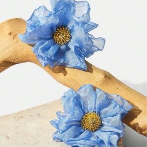 2/$30🌵 Blue Chiffon Flower Earrings Gold Jumbo Garden Floral Zara Jewelry NEW