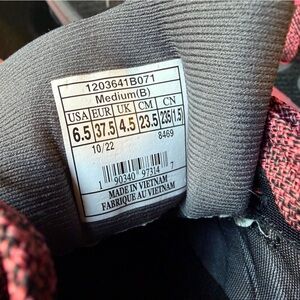 New in box! Unused Brooks “Trace 3” athletic shoes in charcoal and coral. Designed as “neutral” for running or walking. Please note that although the box says size 7—- the shoes say size 6.5 (!) [Bin Z103]