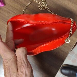 Make a bold statement with this vibrant red lip-shaped bag. Perfect for adding a pop of color to any outfit. This crossbody bag is NWT and includes the red lips bag charm.