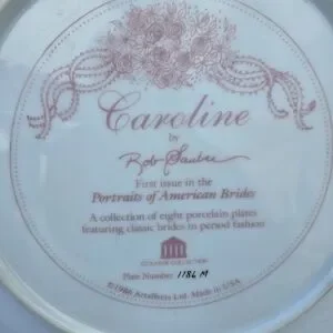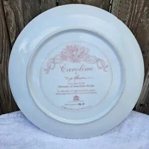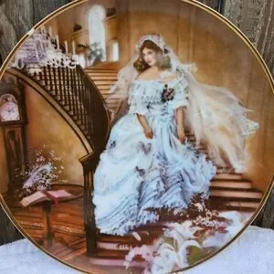 Beautiful decorative plate featuring a bride in a white gown. Elegant design with gold accents.