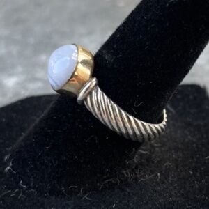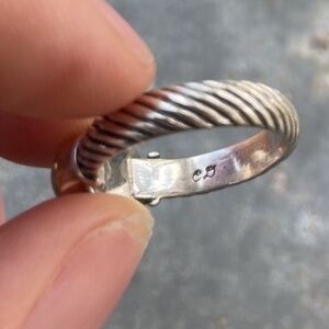 This is a beautiful size 6.5 moonstone sterling silver braided ring from Sundance Catalog, purchased years ago. Its stamp is "CD."