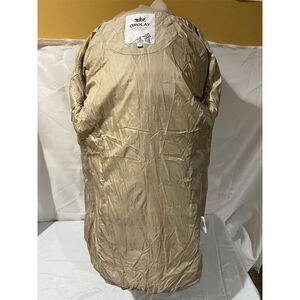 Keywords: Orolay jacket, women's puffer, quilted down, beige coat, winter wear, faux fur hood, casual jacket, long sleeve, full-length zipper, warm jacket, XS size, solid pattern, fur trim, winter fashion, new condition.
