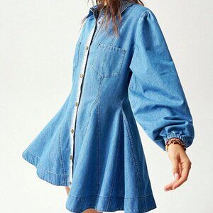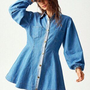Dark Wash Casual Women's Loose Denim Long Sleeve Mini Dress