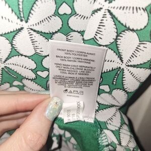 This is a used in very good condition, white and green shamrock Hudson style zip front tank top from Express.