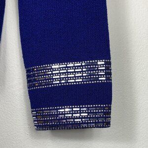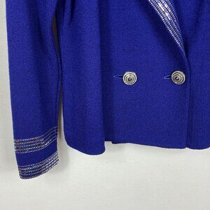St. John Sz 14 Royal Blue Santana Knit Silver Paillette Rhinestone Blazer Jacket