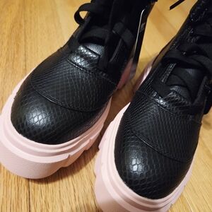 Stylish black boots with pink platform soles. Waterproof, featuring a lace-up design. These are GREAT but sadly a bit too big.😫 Brand new, never worn.