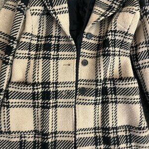 Ann Taylor LOFT Camel Black Plaid Wool Blend Coat Size 2