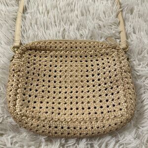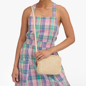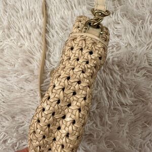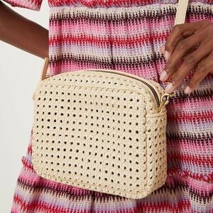 Clare V Midi Sac crossbody bag in Cream Rattan woven leather. Zip top with gold hardware, great neutral color! Crossbody strap is detachable, and you can easily swap out straps for versatility!