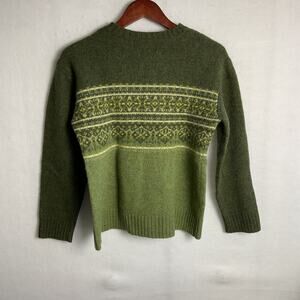 Express Bleus Womens Vintage Fair Isle Wool Pullover Sweater Green Medium