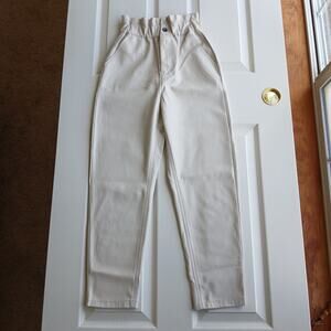 Zara Faux Leather Paper Bag Pants 00 baggy high rise trouser Cream Ecru repaired