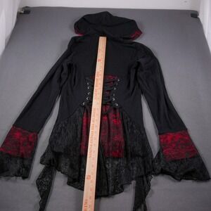 Y2K Lace Corset Hoodie Tripp NYC Sweater Black Red Jacket Womens M Goth Punk
