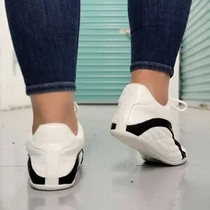 White Women Low Top Sneakers Synthetic Round Closed Toe Padded Shoes