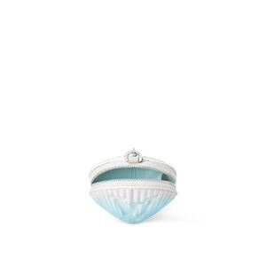 The Shell coin purse is a playful, collectible piece from the LV By the Pool summer collection. It comes in cowhide leather, which is embossed with a trompe-l'œil scallop pattern and the LV Initials. Its shaded color palette and silver-tone chain add a refined finishing touch