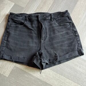 American Eagle Black Denim Cuffed Shorts Distressed Casual Womens 14
