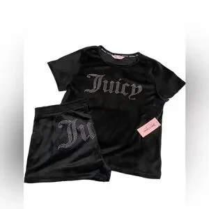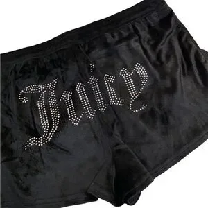 Juicy Couture Velour Black Pajamas Set Shorts with Rhinestones
