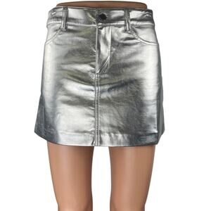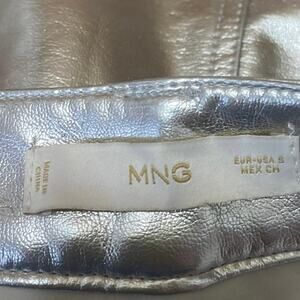 MNG Mango Women's Silver Metallic Faux Leather Zipper Casual Mini A-Line Skirt S