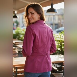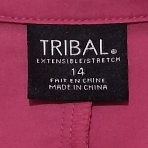 EUC TRIBAL Sz. 14 Purple Long Sleeve Button Down Shirt. The sleeve cuffs have three buttons. Machine wash separately gentle cycle cold water. Non-chlorine bleach. Line dry. Low iron. No flaws noted.