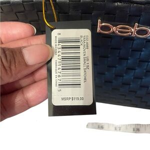 Bebe Black Woven Shoulder Bag 11 X 12” new gold tone strap