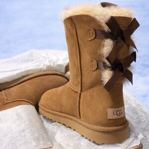 NEW UGG Women's Brown Sheepskin Winter Boots Bailey Bow 2