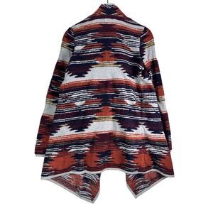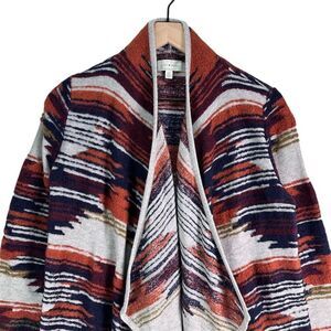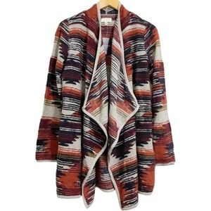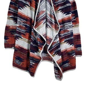 Lucky Brand Boho Aztec Print Waterfall Cardigan Small Rust Navy Southwest Knit