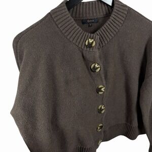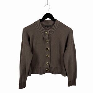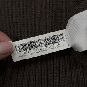 Quince Women 100% Organic Cotton Cropped Cardigan Heather Brown Sleeved Top S
