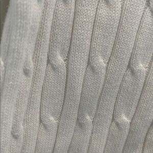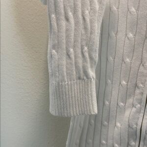 Chic white cable knit cardigan with zip closure. Features signature logo detail. Ideal for layering. 100% Cotton, Great condition, Smoke and pet free home. Size: L