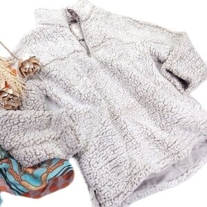 Altar'd State White Brown Sherpa Sweater Pullover Sz S