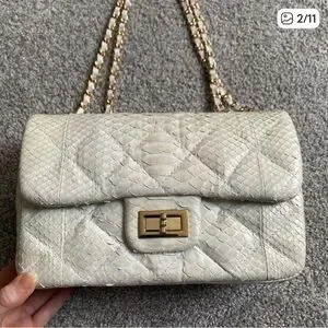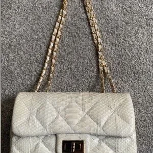 Genuine python quilted 2.55 ivory chain handbag