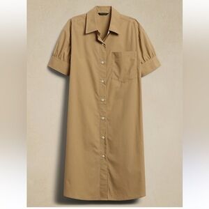 Banana Republic Poplin Knee Length Shirt Dress in Khaki, Size Small