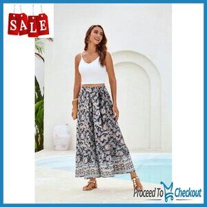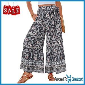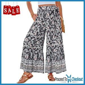Women's Wide Leg Palazzo Pants Elastic High Waist Flowy Beach
