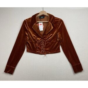 New Cider Velvet Lace Up Women's Crop Top Rust Small BOHO Romantic Pullover NWT