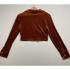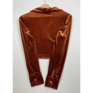 New Cider Velvet Lace Up Women's Crop Top Rust-Orange Small BOHO Pullover Long Sleeve NWT Romantic