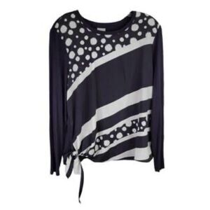 Elevate your wardrobe with Chico’s navy and white long sleeve top. Lovely modern abstract print with long sleeves and side tie. Chico’s Size 1 = Universal Size 8