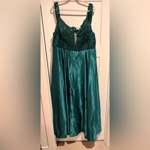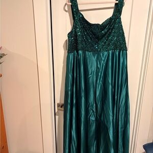 Stunning gown with a sequin bodice. Perfect for formal events. Beautiful green color.