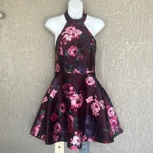 My Michelle High Halter Neck Floral Print Fit & Flare Formal Mini Dress NWT
