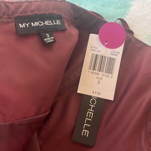 Boning in sides. Back zip closure. Fully lined with crinoline skirt. 100% polyester. Size 3. See photos for measurements to ensure fit. NWT