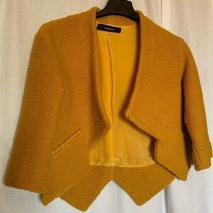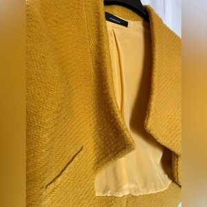 Perfect for transitioning into spring! Fully lined. Great with skirt, jeans.. a pop of color! Front pockets, knit pattern. High/low hem. Polyester, alpaca, acetate. Has some pilling (as expected with natural fiber from alpaca).