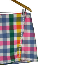 Crown & Ivy Pastel Plaid Gingham Printed Faux Wrap Stretch Skort Women’s Size 12