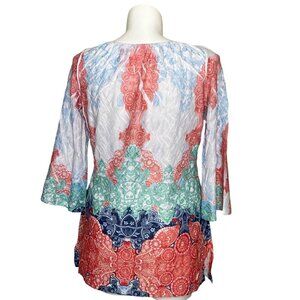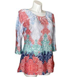 Reba Multicolor Bohemian Tunic Top, 3/4 Sleeves Paisley Print Design Women's L