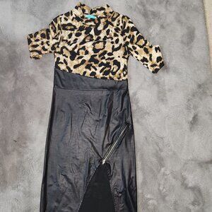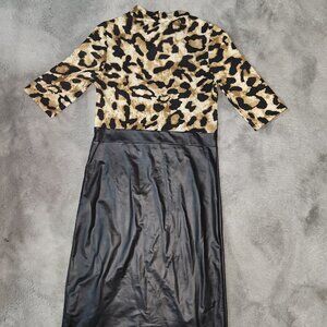 NWT Leopard Print Faux Leather Asymmetrical Dress Size M