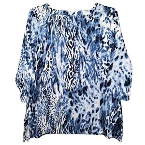 This is a Chico's Pima Cotton Blue Animal Print Square Neck 3/4 Sleeve Tunic Size 3 (XL)