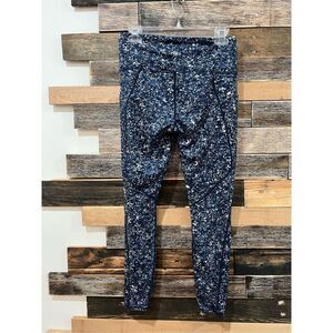 Athleta Blue Sandstone 7/8 Stash Pocket Leggings Tights Sz M . See pictures with measurements. Gently used preowned condition. Color maybe slightly different due to light