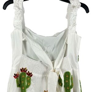 Queen of Sparkles Cutout Fuzzy Cactus Mini Dress Tie Back White & Green S