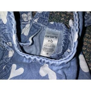 Carters Newborn Baby Girl Denim Hearts Ruffle Romper Valentines Day Jumper