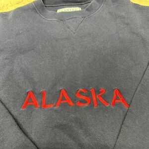 Vintage Santee Alaska Embroidered Crewneck Sweatshirt XL Navy Blue Red Spellout